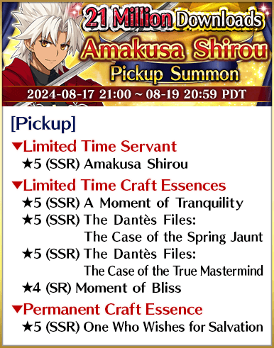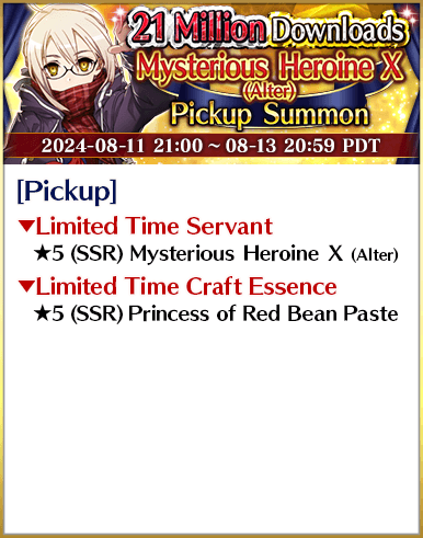 * The following Craft Essence(s) can also be acquired through Story Summon. They will continue to be available through Story Summon after the Pickup Summon period ends.