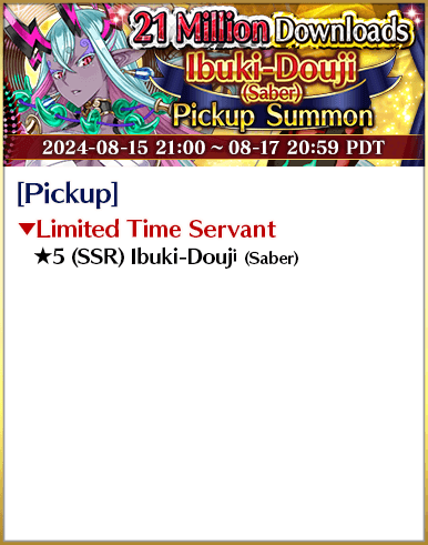 * The following Servant(s) will not be added to Story Summon after the Pickup Summon period ends.
