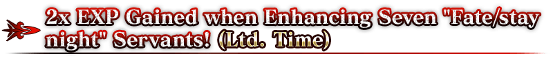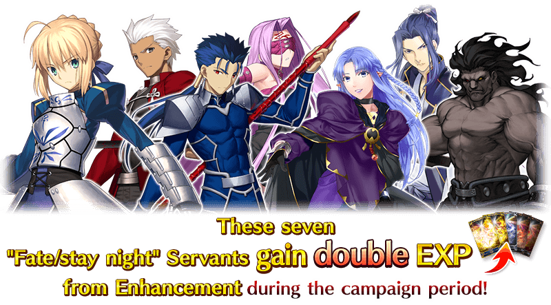 During the period below, these seven "Fate/stay night" Servants will will receive double EXP when performing Enhancement.