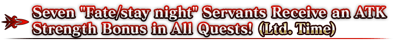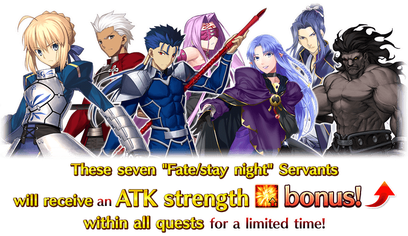 These seven "Fate/stay night" Servants will receive an ATK Strength bonus within all quests during the period below!