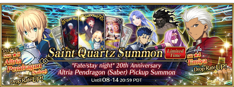 "'Fate/stay night' 20th Anniversary Altria Pendragon (Saber) Pickup Summon" Details: