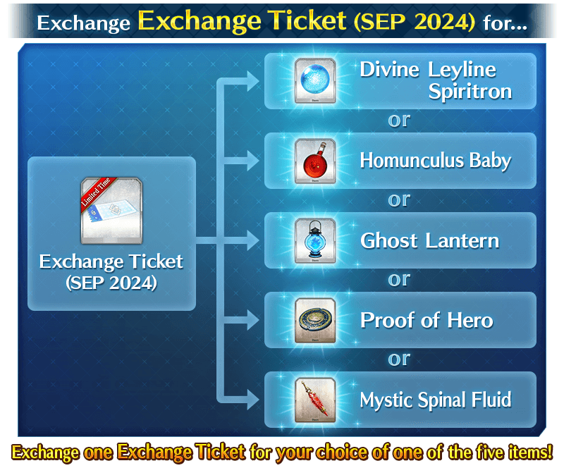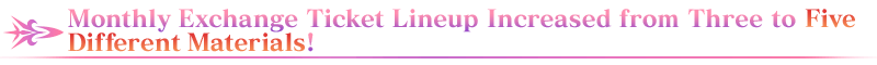 The items available for exchange with "Monthly Exchange Tickets" received through Consecutive Login Bonuses and Daily Missions will change to five different items starting from 2024-08-31 17:00 PDT (GMT -7).