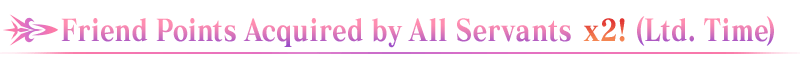 When you select another Master's Servant at the beginning of a quest as Support, or when another Master selects one of your Servants as Support, you will receive double the amount of Friend Points for the period below.