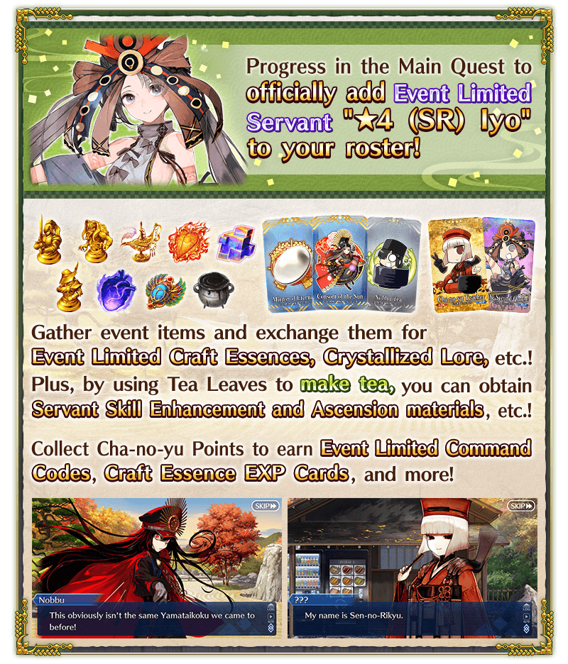Get Event Limited Craft Essence EXP Cards "Cha-no-yu Teacher" and "Iyo the Second Queen!"