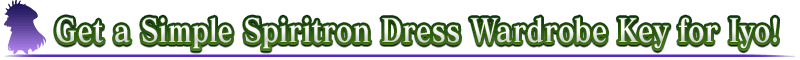 About the Spiritron Dress Wardrobe Key: * The Spiritron Dress Wardrobe Key for ★4 (SR) Iyo can be acquired only during the event period of the Limited Time Event "THE Great Tea Ceremony Battle: GUDAGUDA New Yamataikoku, The Man Who Returned from Hell". * The Simple Spiritron Dress for ★4 (SR) Iyo will change her appearance and certain voice lines. * Please note that although it is possible to obtain the Spiritron Dress Wardrobe Key even if you do not have ★4 (SR) Iyo, you cannot unlock the Spiritron Dress.