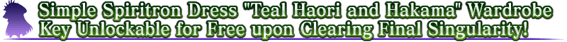 * There will be no time limit on free exchange for the Simple Spiritron Dress "Teal Haori and Hakama" Wardrobe Key.