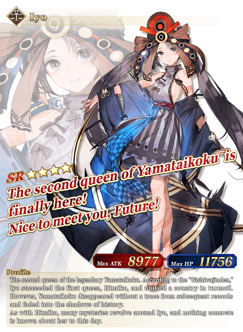 Progress in the Main Quest to officially add Event Limited Servant "★4 (SR) Iyo" to your roster.
