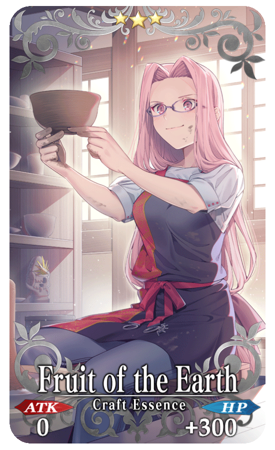 About Featured Craft Essences: * The following Craft Essence(s) will also be available from Friend Point Summon for the duration of the Pickup Summon period. - ★3 (R) Fruit of the Earth * The following Craft Essence(s) will be automatically burned if you have ★3 (R) Craft Essences included in your Automatic Burning settings. Please check your settings before summoning. - ★3 (R) Fruit of the Earth
