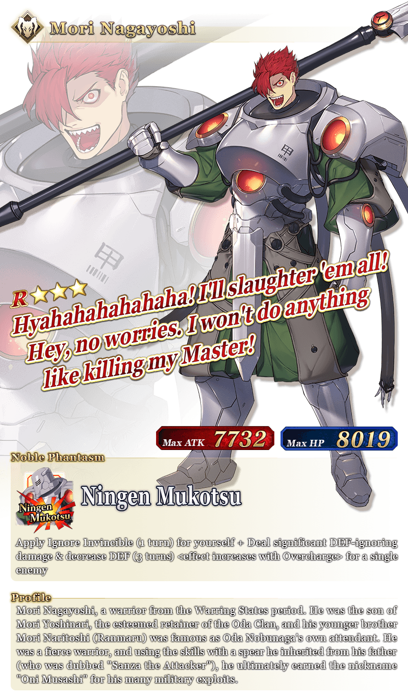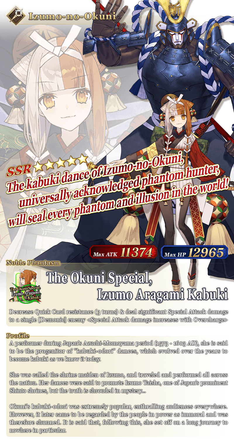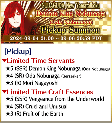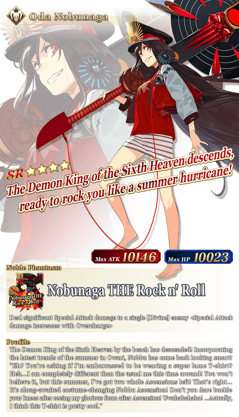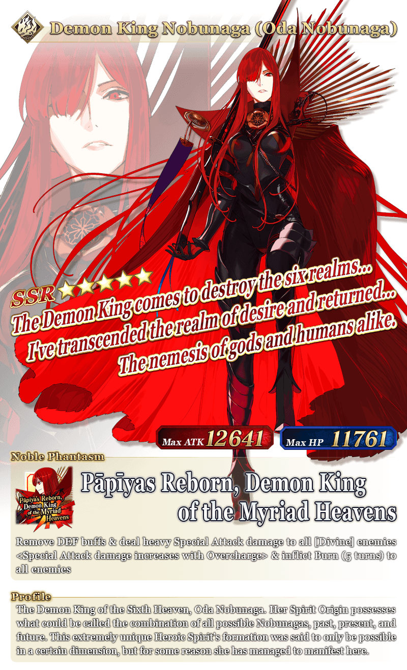 * The name displayed for ★5 (SSR) Demon King Nobunaga (Oda Nobunaga) will change from ★5 (SSR) Oda Nobunaga to ★5 (SSR) Demon King Nobunaga with Stage 3 Ascension.