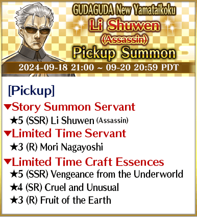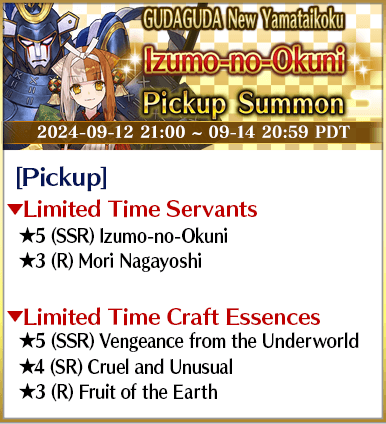 * All Masters will be able to participate in the "GUDAGUDA New Yamataikoku Pickup 2 Summon", regardless of story progression.