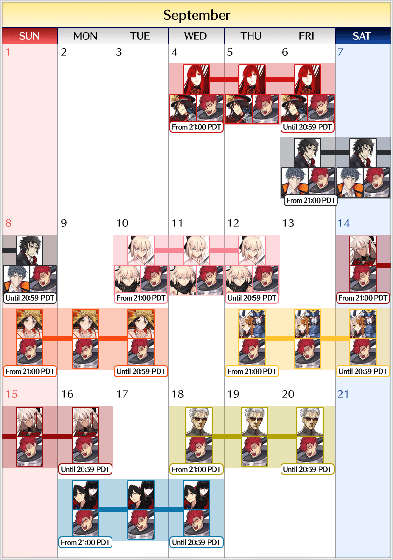 * Bonus Summons will be calculated separately for each Summon Lineup. * Please note that the Summon Period for each Pickup Summon will differ. * In this Summon, only the Pickup ★5 (SSR) Servant in each individual Summon will be eligible for the "Guaranteed Summon" feature.