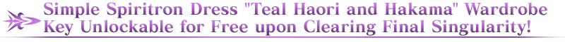 * There will be no time limit on free exchange for the Simple Spiritron Dress "Teal Haori and Hakama" Wardrobe Key.