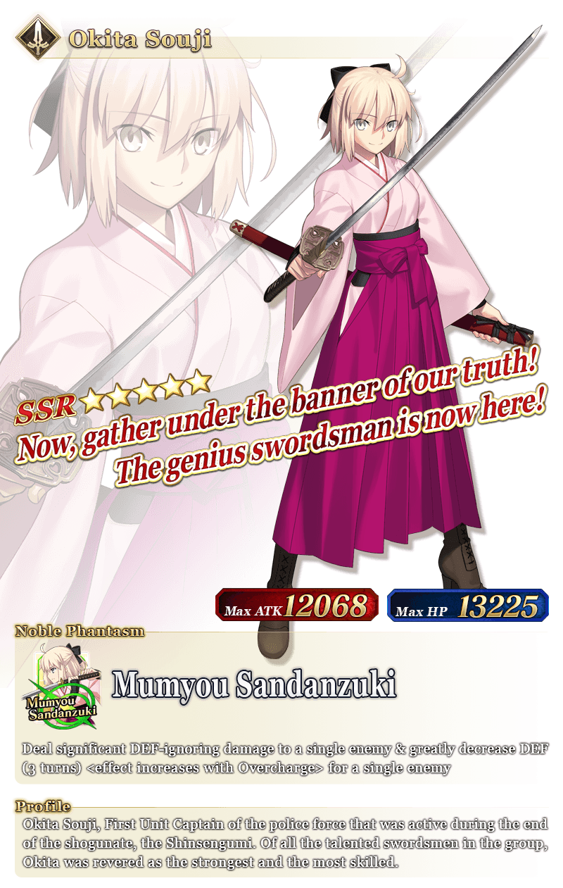 * The Noble Phantasm name for ★4 (SR) Okita J. Souji will change based on Ascension stage.