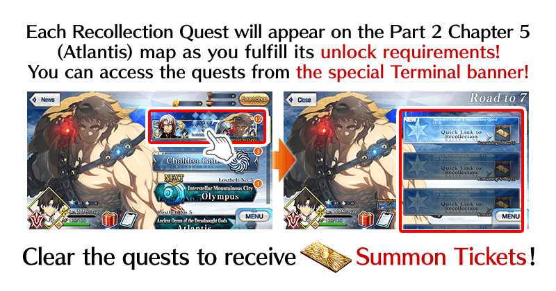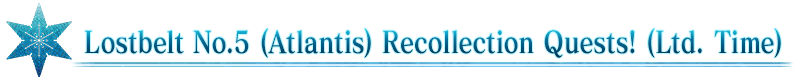 For those that have already cleared Part 2 Chapter 5 "Lostbelt No.5: Ancient Ocean of the Dreadnought Gods, Atlantis - The Day to Bring Down Gods", this campaign will also include Recollection Quests, where you can re-experience some of the most memorable quests of Part 2 Chapter 5 (Atlantis), and Ultra High Difficulty Super Recollection Quests for Masters who want to test their mettle!