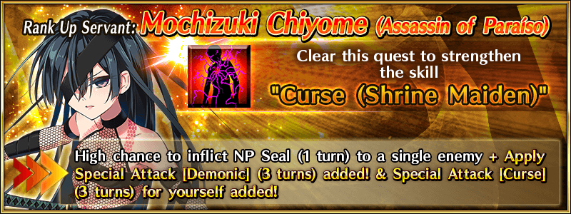 In addition, ★4 (SR) Mochizuki Chiyome (Assassin of Paraíso) will require you to reveal her True Name.