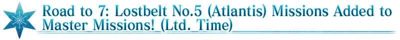During the period below, Road to 7: Lostbelt No.5 (Atlantis) Missions will be added to the "Ltd. Time" tab on the Master Missions screen.