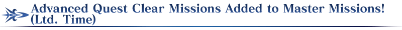 During the period below, limited time Advanced Quest Clear Missions will be added to the "Ltd. Time" tab on the Master Missions screen.