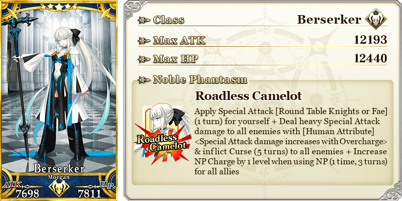 * The game music played during the Noble Phantasm animation for ★5 (SSR) Morgan will change after clearing a certain Main Quest in Part 2 Chapter 6 "Lostbelt No.6: Fae Round Table Domain, Avalon le Fae - The Moment a Planet Is Born".