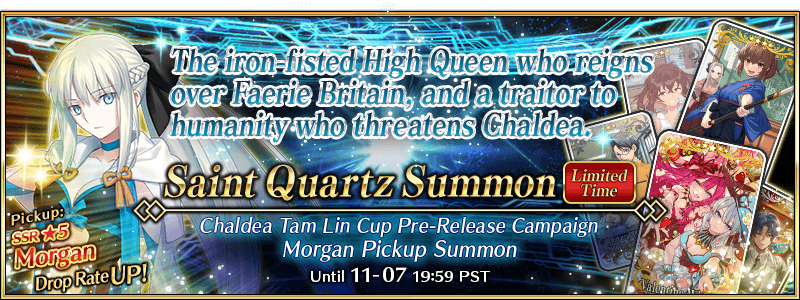 "Chaldea Tam Lin Cup Pre-Release Campaign Morgan Pickup Summon" Details:
