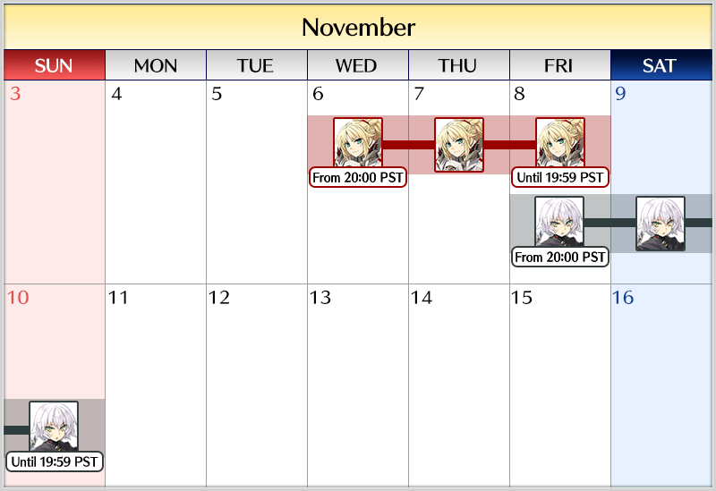 - If multiple Limited Time Pickup Summons are available at once, the number of summons you have performed will be counted individually for each Pickup Summon (each page on the Summon Screen). In addition, summons will be counted individually for each Summon Period that the Pickup Lineup changes for a Daily Pickup Summon. For example, in a Daily Pickup Summon where the Pickup Lineup changes each day at 20:00 PST (GMT -8), your summon count will be reset at the moment the Pickup Lineup changes.