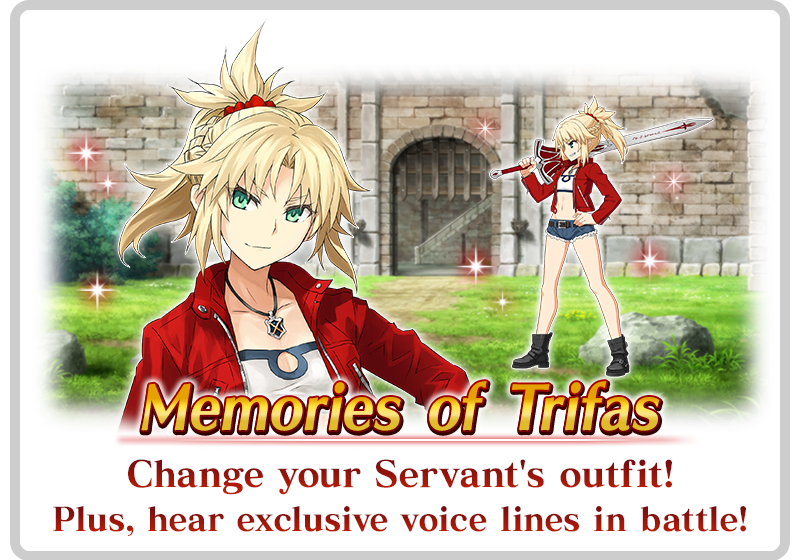 The Wardrobe Key for the Spiritron Dress "Memories of Trifas" for ★5 (SSR) Mordred (Saber) will become free to exchange in "Dress Making" in the Da Vinci Workshop once you have cleared Fourth Singularity!
