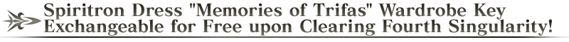 * There will be no time limit on free exchange for the Spiritron Dress "Memories of Trifas" Wardrobe Key.