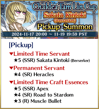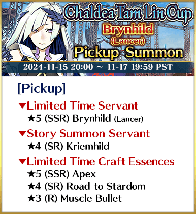"Chaldea Tam Lin Cup Obstacle Quest Pickup 2 Summon" Period:
