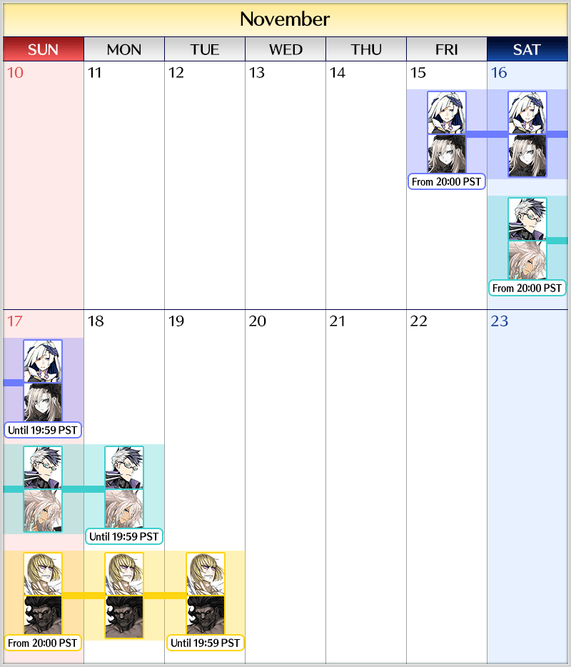 "Chaldea Tam Lin Cup Obstacle Quest Pickup 2 Summon" Schedule: