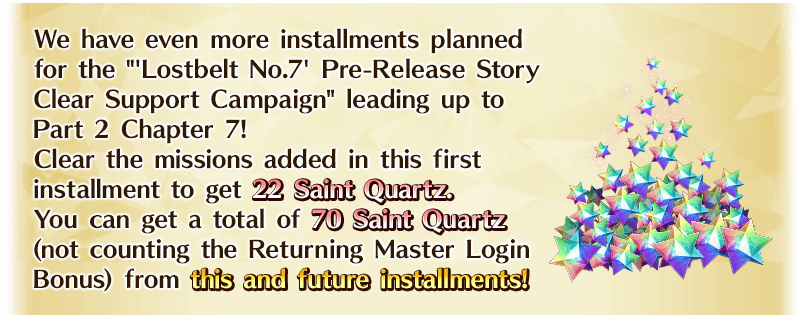 For information about the "'Lostbelt No.7' Pre-Release Story Clear Support Pickup Summon", please see the article linked below.