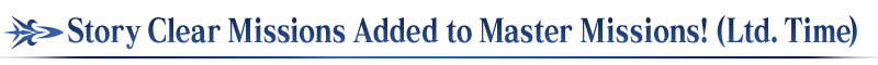 During the period below, [Story Clear Support: Part 1] Missions will be added to the "Ltd. Time" tab on the Master Missions screen.
