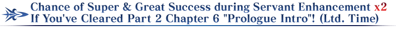 During the period below, the chance of Super Success (double EXP acquired) and Great Success (triple EXP acquired) when performing Servant Enhancement will be doubled for a limited time!