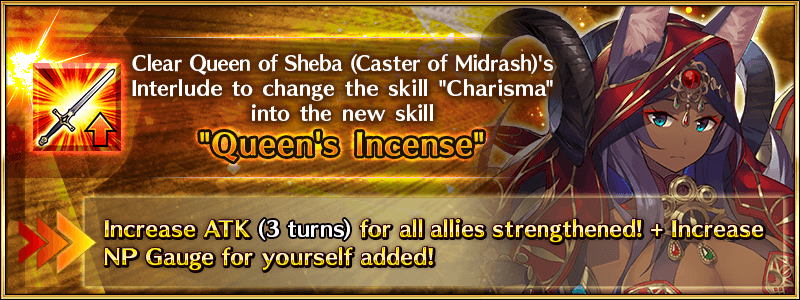 Interlude Rewards: - Skill rank up for Queen of Sheba (Caster of Midrash) |