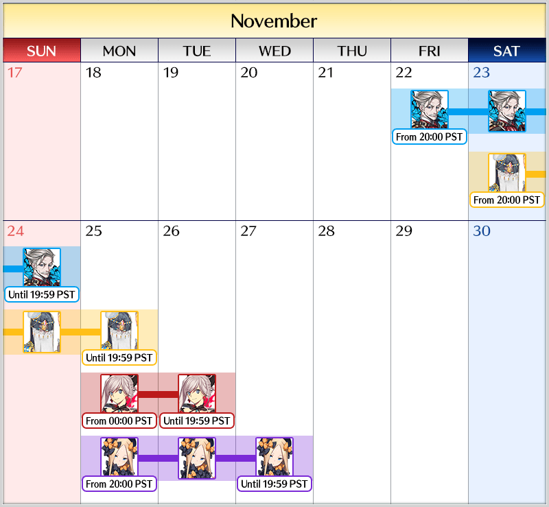 - If multiple Limited Time Pickup Summons are available at once, the number of summons you have performed will be counted individually for each Pickup Summon (each page on the Summon Screen). In addition, summons will be counted individually for each Summon Period that the Pickup Lineup changes for a Daily Pickup Summon. For example, in a Daily Pickup Summon where the Pickup Lineup changes each day at 20:00 PST (GMT -8), your summon count will be reset at the moment the Pickup Lineup changes.