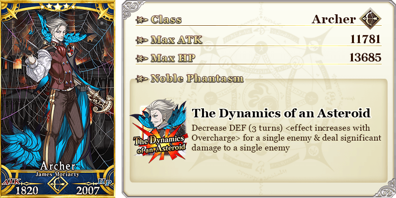 The unlock requirements of his Interludes will be changed to special unlock requirements for a limited time. Take this opportunity to clear the Interludes for ★5 (SSR) James Moriarty (Archer) (Archer of Shinjuku)!