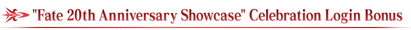 To celebrate the "Fate 20th Anniversary Showcase" we are distributing a login bonus.