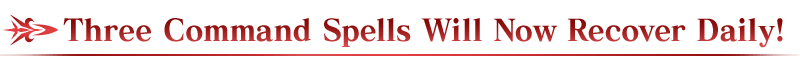 Previously, only one of your used up Command Spells would recover per day. However, as of 2024-11-24 20:00 PST, all three Command Spells will recover daily at 16:00 PST (17:00 PDT)!
