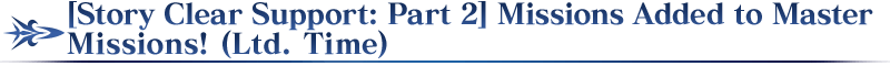 During the period below, [Story Clear Support: Part 2] Missions will be added to the "Ltd. Time" tab on the Master Missions screen.