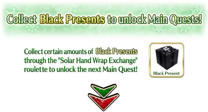 Certain amounts of Black Presents can be used to unlock the next Main Quest, so be sure to spin the roulette and collect tons of Black Presents!