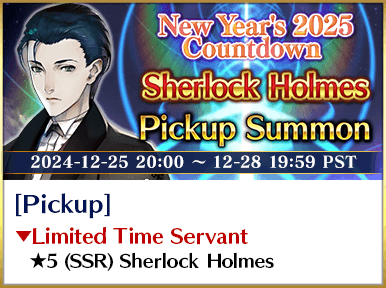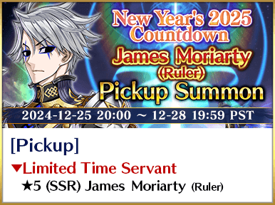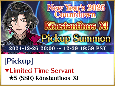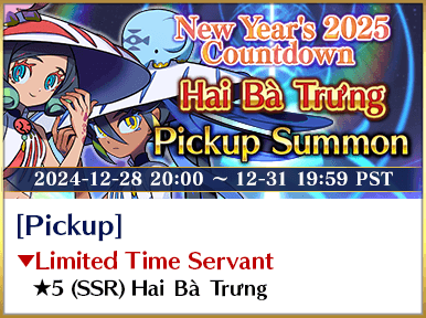 To celebrate the "New Year's 2025 Countdown Campaign", five Limited Time Servants will be featured in five Pickup Summons!