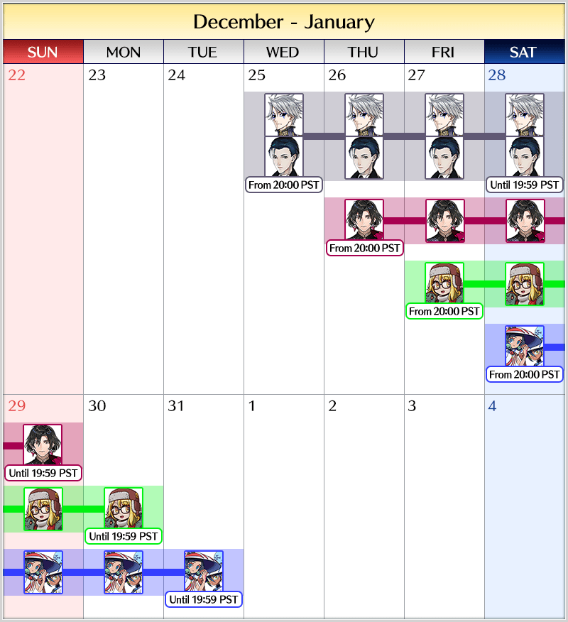 "New Year's 2025 Countdown Pickup Summon" Schedule: