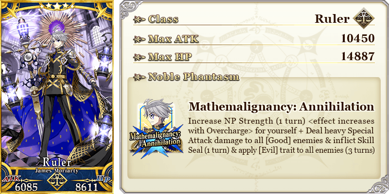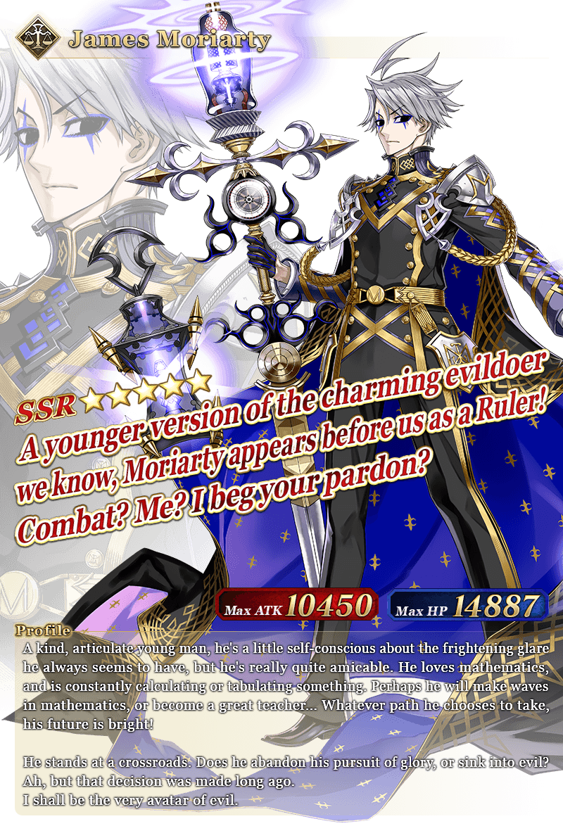 * The Noble Phantasm animations for ★5 (SSR) James Moriarty (Ruler) will change based on Ascension stage.