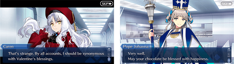 * You can only receive Valentine's gifts (Craft Essences) from Servants you have Summoned in the past. Please note that Servants you have never Summoned will not be eligible. * It is possible to receive Valentine's gifts (Craft Essences) from this event, even if you have copies of the same Craft Essence from previous Valentine's events. * Certain Servants' Valentine's scenes will not be displayed in full-screen resolution.