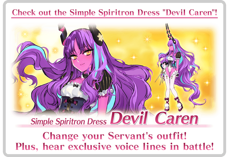 The Simple Spiritron Dress "Devil Caren" Wardrobe Key for ★5 (SSR) Caren C. Hortensia (Amor (Caren)), exchangeable through "Dress Making" in the Da Vinci Workshop, will become exchangeable for free upon clearing Final Singularity!