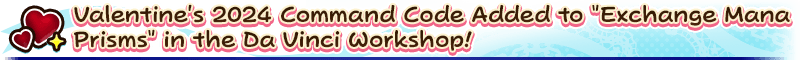 To commemorate the Limited Time Event "Johanna and the Unidentified Love: Smash 'em Up☆Love, Lovers, and the Great Stone Statue", the Valentine's 2024 Command Code "★3 (R) Buddy Ring [Gold]" will be permanently added to "Exchange Mana Prisms" in the Da Vinci Workshop.