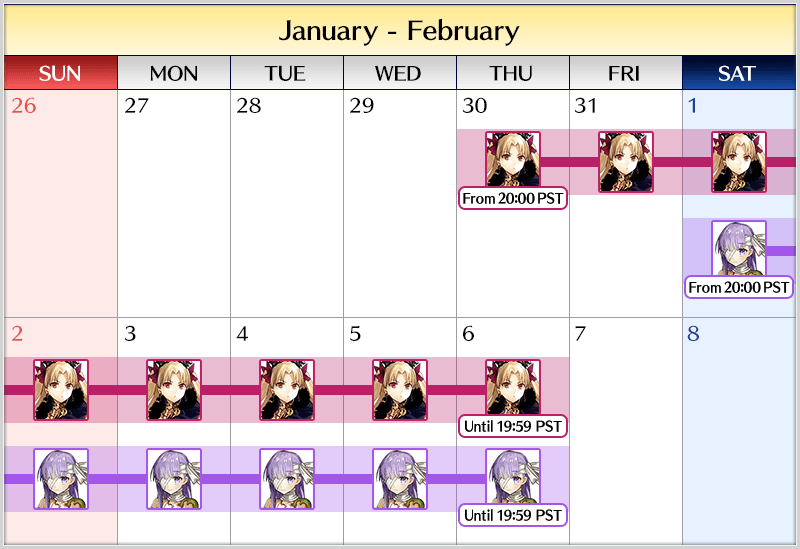* Bonus Summons will be calculated separately for each Summon Lineup. * Please note that the Summon Period for each Pickup Summon will differ. * In this Summon, only the Pickup ★5 (SSR) Servant in each individual Summon will be eligible for the "Guaranteed Summon" feature.