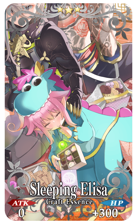 About Featured Craft Essences: * The following Craft Essence(s) will also be available from Friend Point Summon for the duration of the Pickup Summon period. - ★3 (R) Sleeping Elisa * The following Craft Essence(s) will be automatically burned if you have ★3 (R) Craft Essences included in your Automatic Burning settings. Please check your settings before summoning. - ★3 (R) Sleeping Elisa