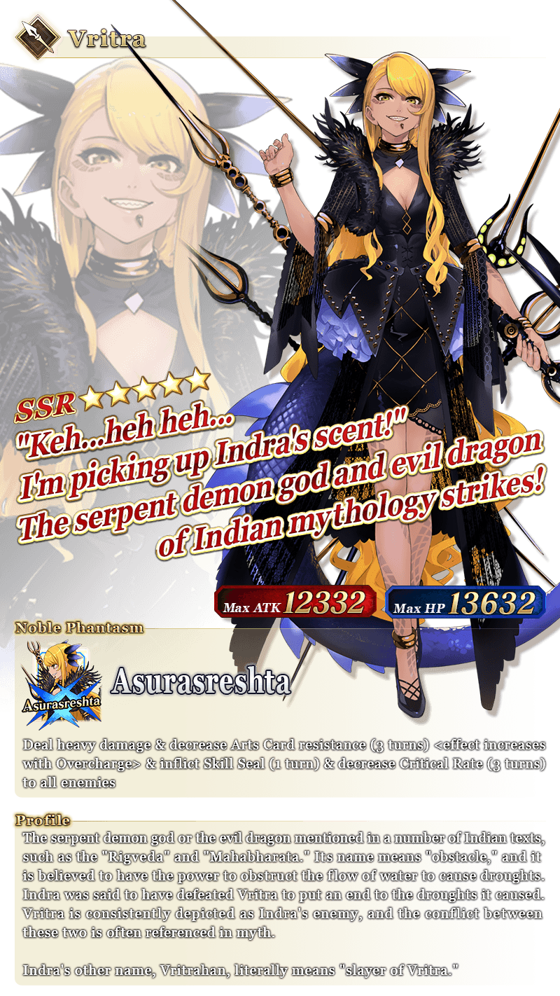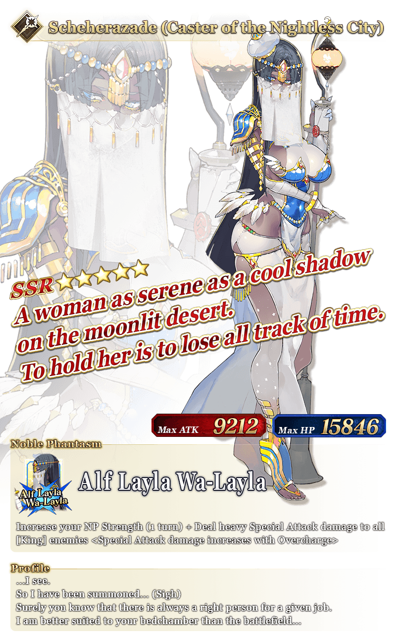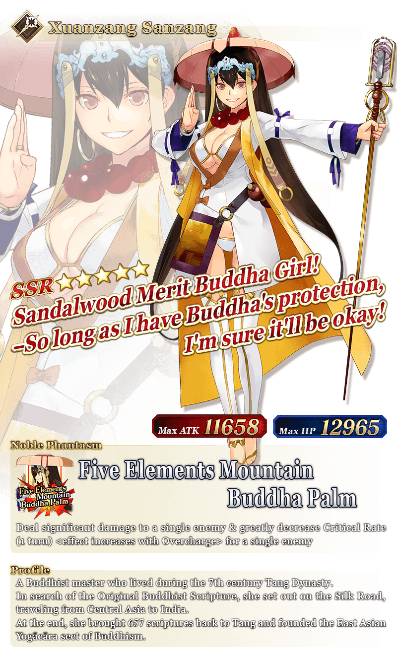 Each 11x Summon is guaranteed to include one ★4 (SR) or above card and one ★3 (R) or above Servant! * The guaranteed ★4 (SR) or above card can be either a Servant or a Craft Essence. * The distribution rate for the guaranteed ★3 (R) or above Servant will differ from that listed on the "Summon Info" screen. * As of 2021-01-01 00:00 PST (GMT -8), Servants whose True Names are hidden will be referred to by their True Name within newly released Main Story chapters, Limited Time Events, certain quests, campaigns, and Pickup Summons. * In-game graphics may vary from the images used within this article.