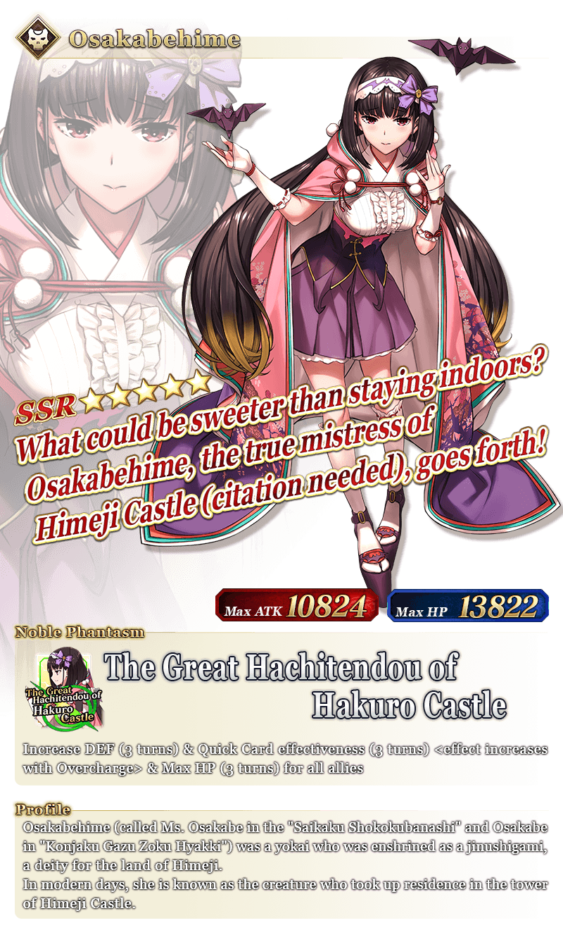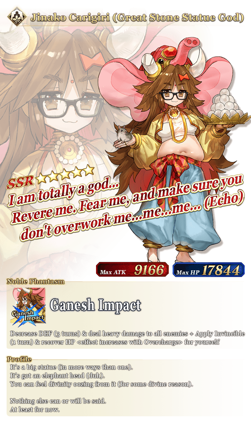 * The name displayed for ★5 (SSR) Jinako Carigiri (Great Stone Statue God) will change from "★5 (SSR) Great Stone Statue God" to "★5 (SSR) Jinako Carigiri" with Stage 2 Ascension.