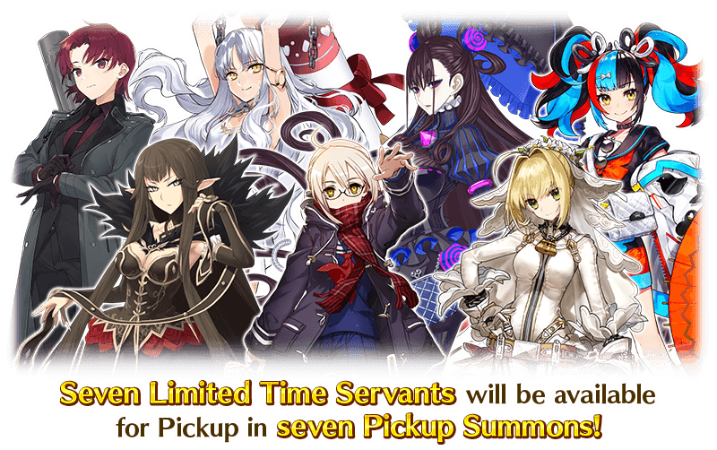 * Each of the seven Servants listed above will be featured in a different Pickup Summon.