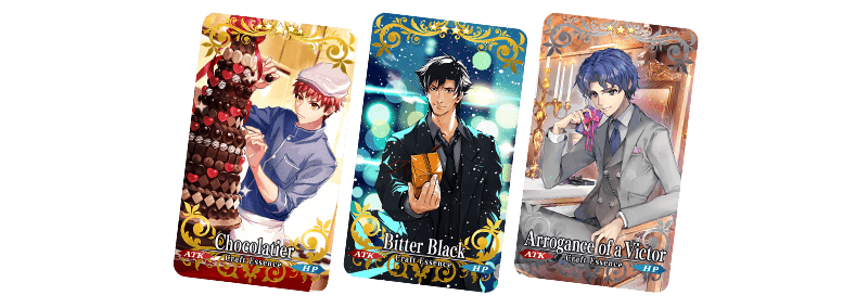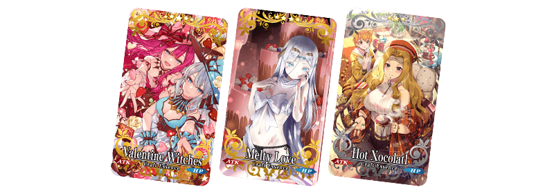 About Featured Craft Essences: * The following are the only Limited Time Craft Essences available from this Pickup Summon. Please note that no other Limited Time Craft Essences will be available. In addition, the following Craft Essences(s) will only be summonable from the Summon Lineup(s) where they are featured as the Pickup Craft Essence. Please be sure to confirm the lineup before summoning. * Please note that the following Craft Essences will not grant an event item drop bonus within the Limited Time Event "Johanna and the Unidentified Love: Smash 'em Up☆Love, Lovers, and the Great Stone Statue" when equipped. - ★5 (SSR) Cute Orangette - ★5 (SSR) Heart of Cooking - ★5 (SSR) Chocolatier - ★5 (SSR) Street Choco-Maid - ★5 (SSR) Chocolate Heaven - ★5 (SSR) Valentine Witches - ★5 (SSR) Bitter and Sweet - ★5 (SSR) Pharaoh Xocolatl - ★4 (SR) Kitchen☆Patissiere - ★4 (SR) Queen's Dream - ★4 (SR) Chocolate Angel - ★4 (SR) First Valentine's - ★4 (SR) Bitter Jewel - ★4 (SR) Bitter Black - ★4 (SR) Melty Love - ★4 (SR) Valkyrie Style - ★3 (R) Witches' Kitchen - ★3 (R) Arrogance of a Victor - ★3 (R) Dear Friend - ★3 (R) Blissful Time - ★3 (R) Valentine Dojo of Tears - ★3 (R) Hot Xocolatl - ★3 (R) Midnight Fever - ★3 (R) Memory of Qualia * The featured ★3 (R) Limited Time Craft Essence(s) will not be summonable from Friend Point Summon.